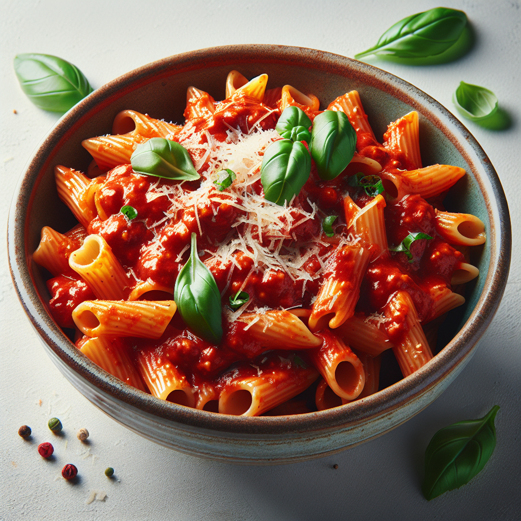 The Ultimate Red Sauce Pasta is a comforting dish that elevates basic ingredients into a flavorful experience. The dish features tender pasta enveloped in a rich tomato sauce flavored with aromatic herbs and a hint of spice, making it perfect for a satisfying dinner. The combination of tomatoes, garlic, and Parmesan adds depth and complexity to this classic Italian-inspired favorite, while cream and butter emphasize its richness. This pasta is a delightful marriage of taste and simplicity, ensuring it will become a beloved addition to any culinary collection.